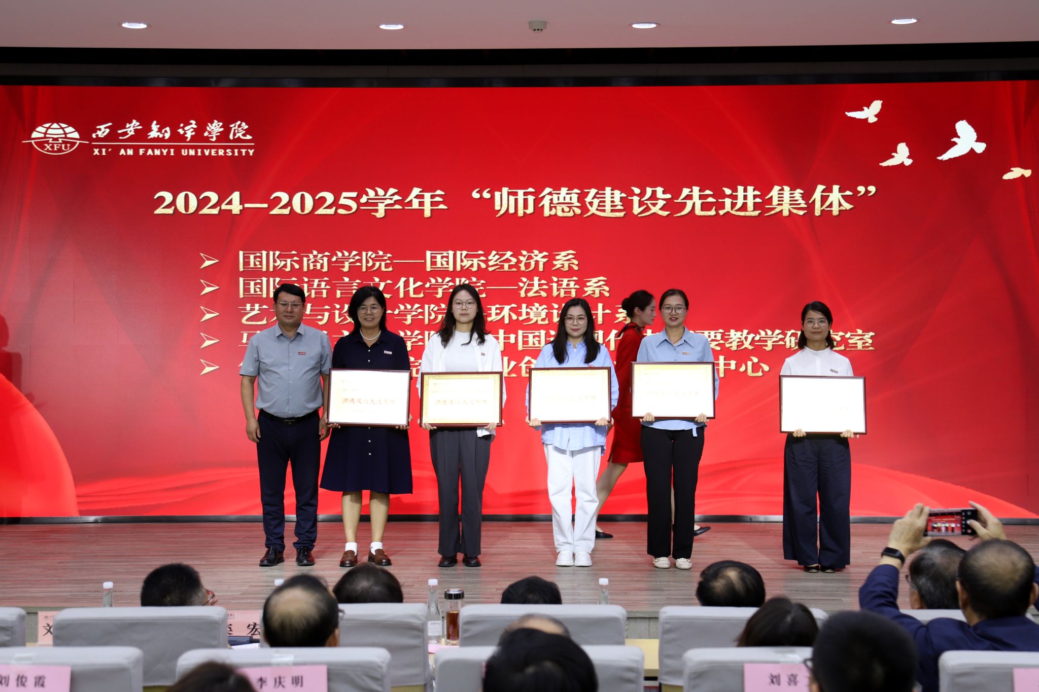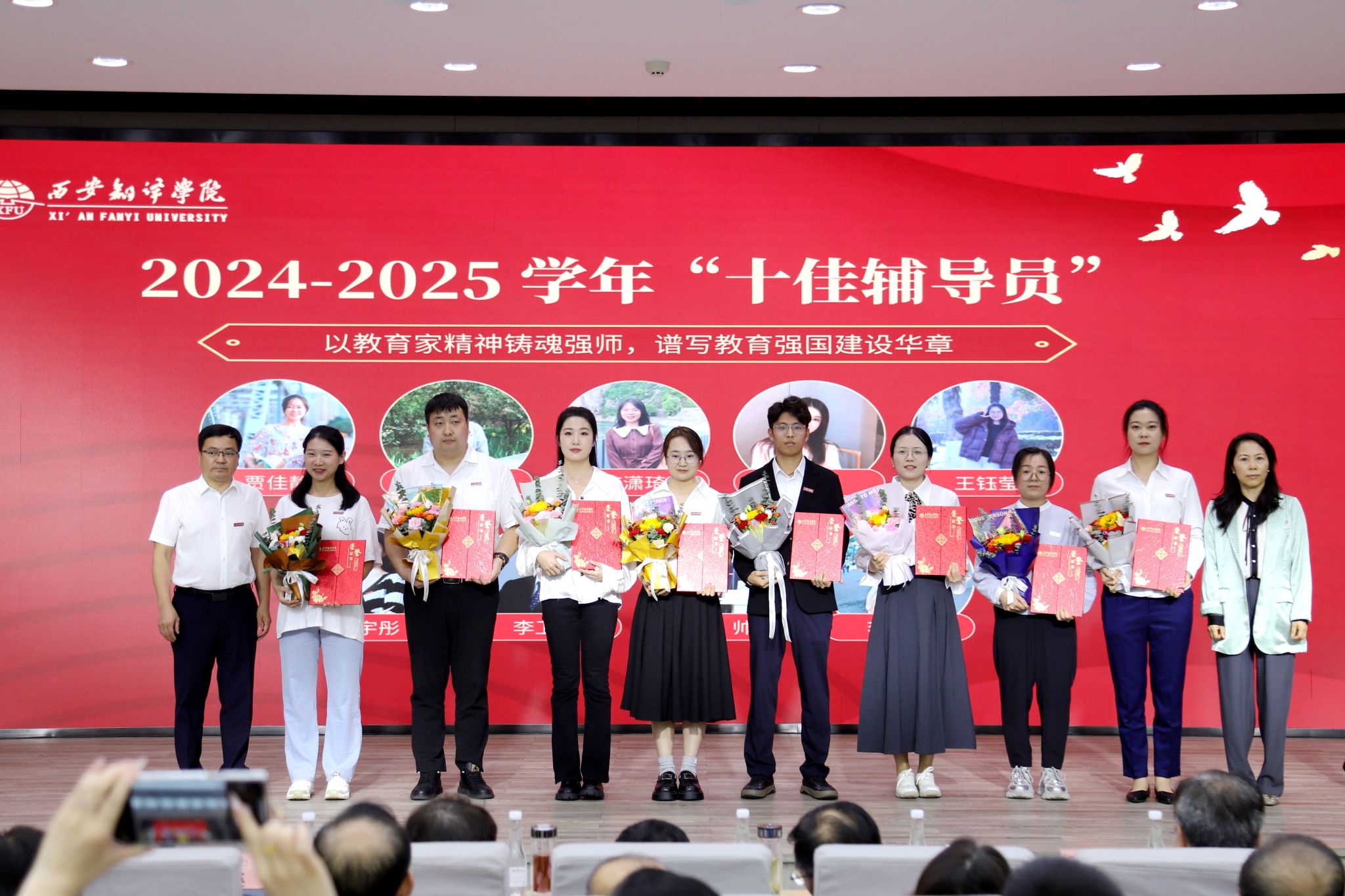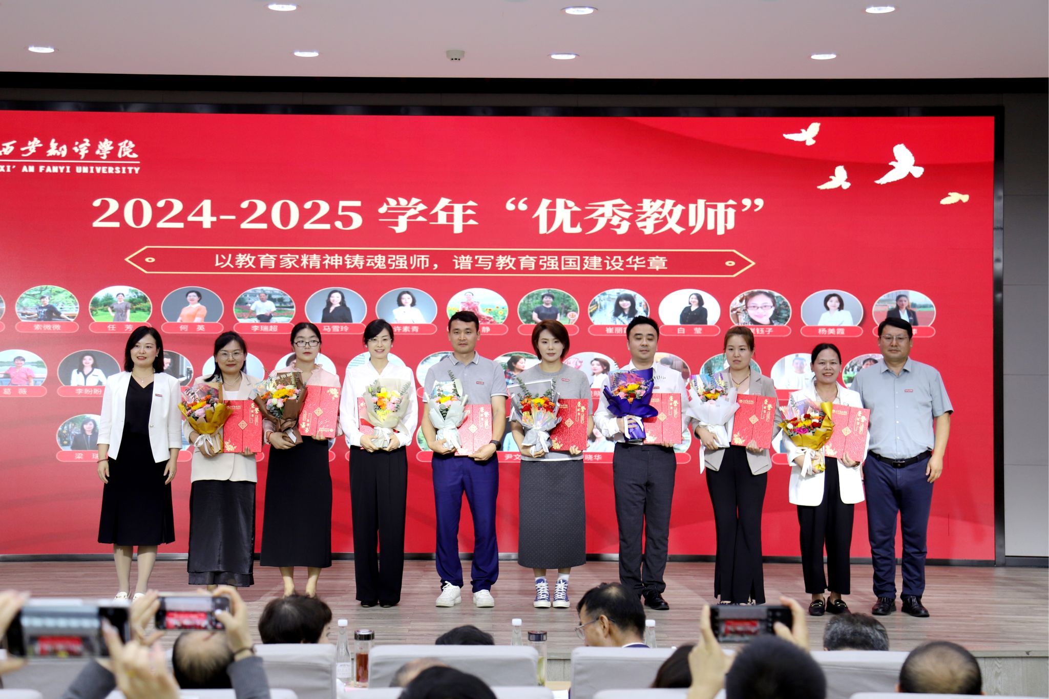 教师是立教之本、兴教之源。西安翻译学院始终将师德师风作为评价教师队伍素质的第一标准。在庆祝教师节暨表彰大会中,学校特别强调了新时代教师的神圣职责,并通过表彰“师德标兵”和“优秀教师”“优秀教育工作者”等先进典型,树立起可见、可学、可感的师德榜样,引导广大教师深刻领会“躬耕教坛”的初心使命,自觉践行“强国有我”的责任担当,将崇高的师德内化于心、外化于行,争做学生为学、为事、为人的“大先生”,成为应用型人才培养道路上可靠的引领者和高尚品格的塑造者。