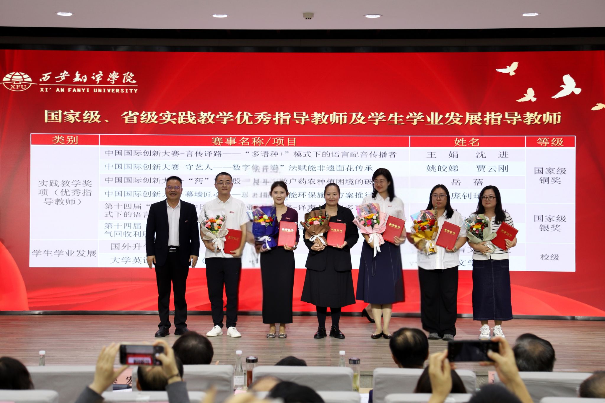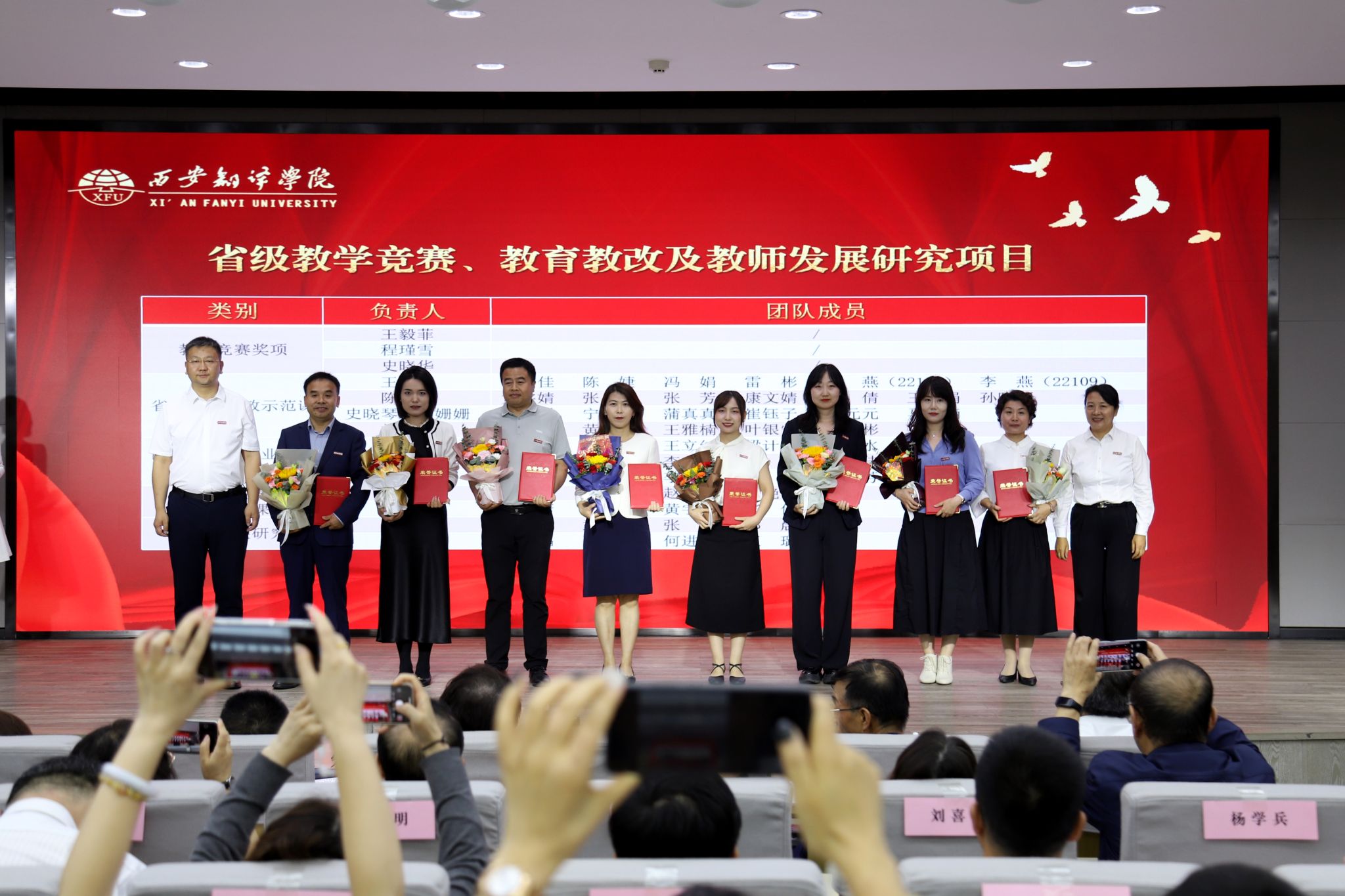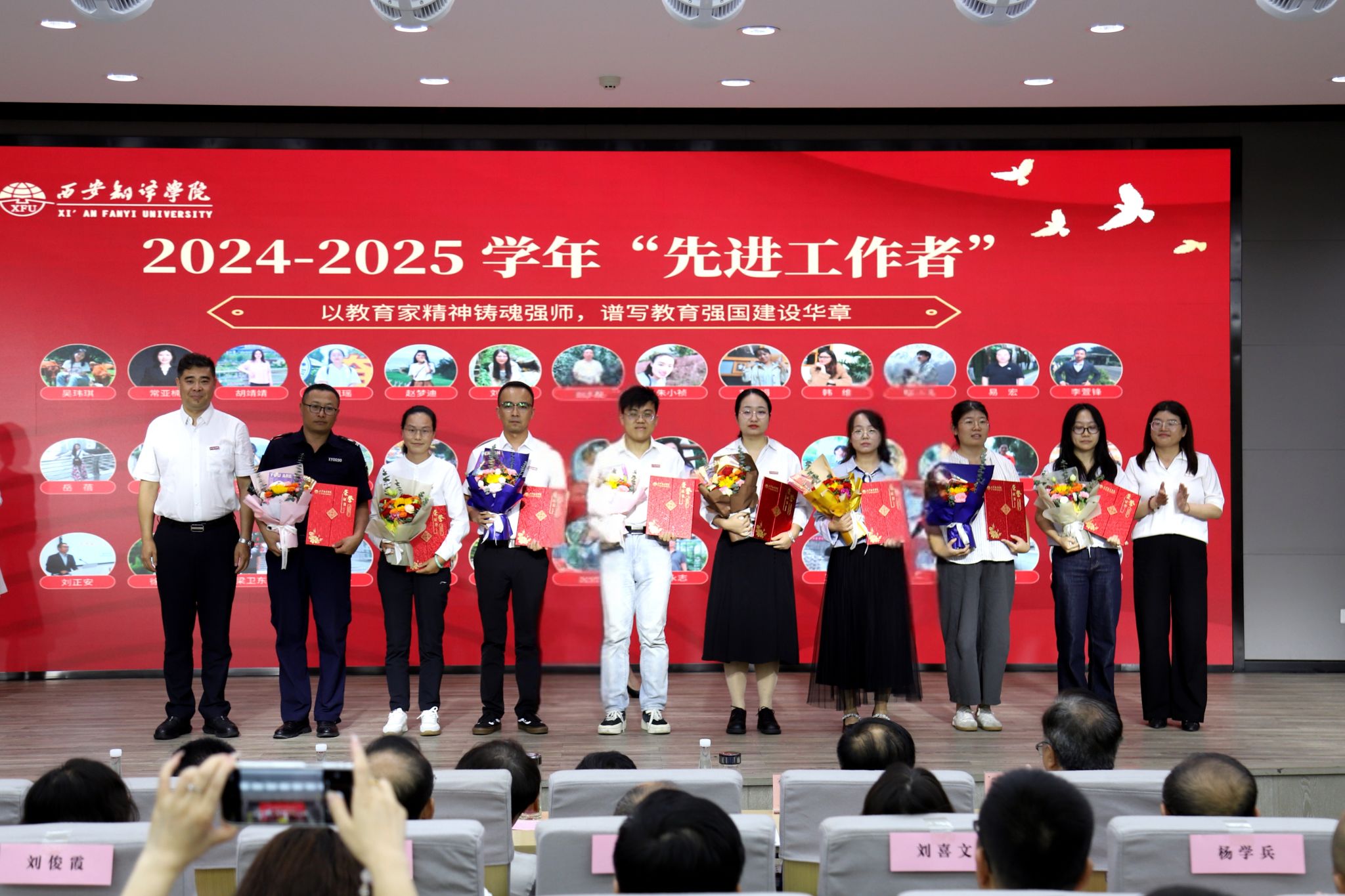 教师是立教之本、兴教之源。西安翻译学院始终将师德师风作为评价教师队伍素质的第一标准。在庆祝教师节暨表彰大会中,学校特别强调了新时代教师的神圣职责,并通过表彰“师德标兵”和“优秀教师”“优秀教育工作者”等先进典型,树立起可见、可学、可感的师德榜样,引导广大教师深刻领会“躬耕教坛”的初心使命,自觉践行“强国有我”的责任担当,将崇高的师德内化于心、外化于行,争做学生为学、为事、为人的“大先生”,成为应用型人才培养道路上可靠的引领者和高尚品格的塑造者。