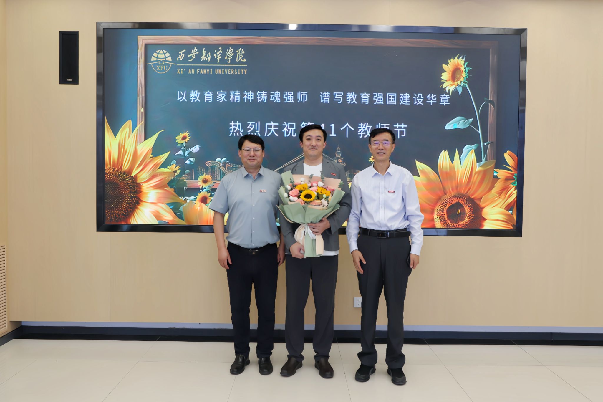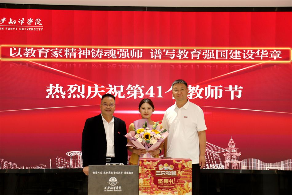9月9日,西安翻译学院组织开展庆祝第41个教师节教师慰问活动。校长姚书志,党委书记、政府督导专员栾宏等校领导带队,走访相关学院及单位慰问教师代表,关怀教师成长,畅谈专业发展,探讨学科建设,凝聚学校转型发展共识。